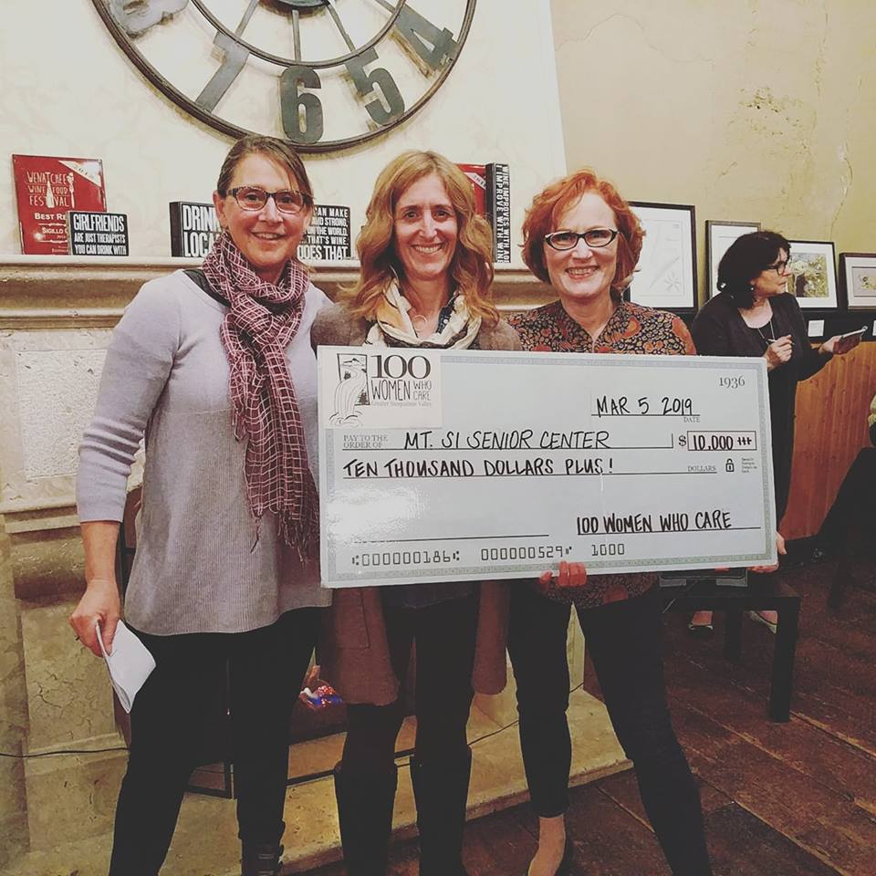 Mary Barrett, Vice-President of Mt. Si Senior Center’s Board was also extremely pleased with the Center’s selection. She noted, “The big story here is the story of persistence.” The Center had been nominated as a beneficiary at every quarterly meeting since 100 Women Who Care – Greater Snoqualmie Valley was founded in 2016, but this is the first time the center was chosen.