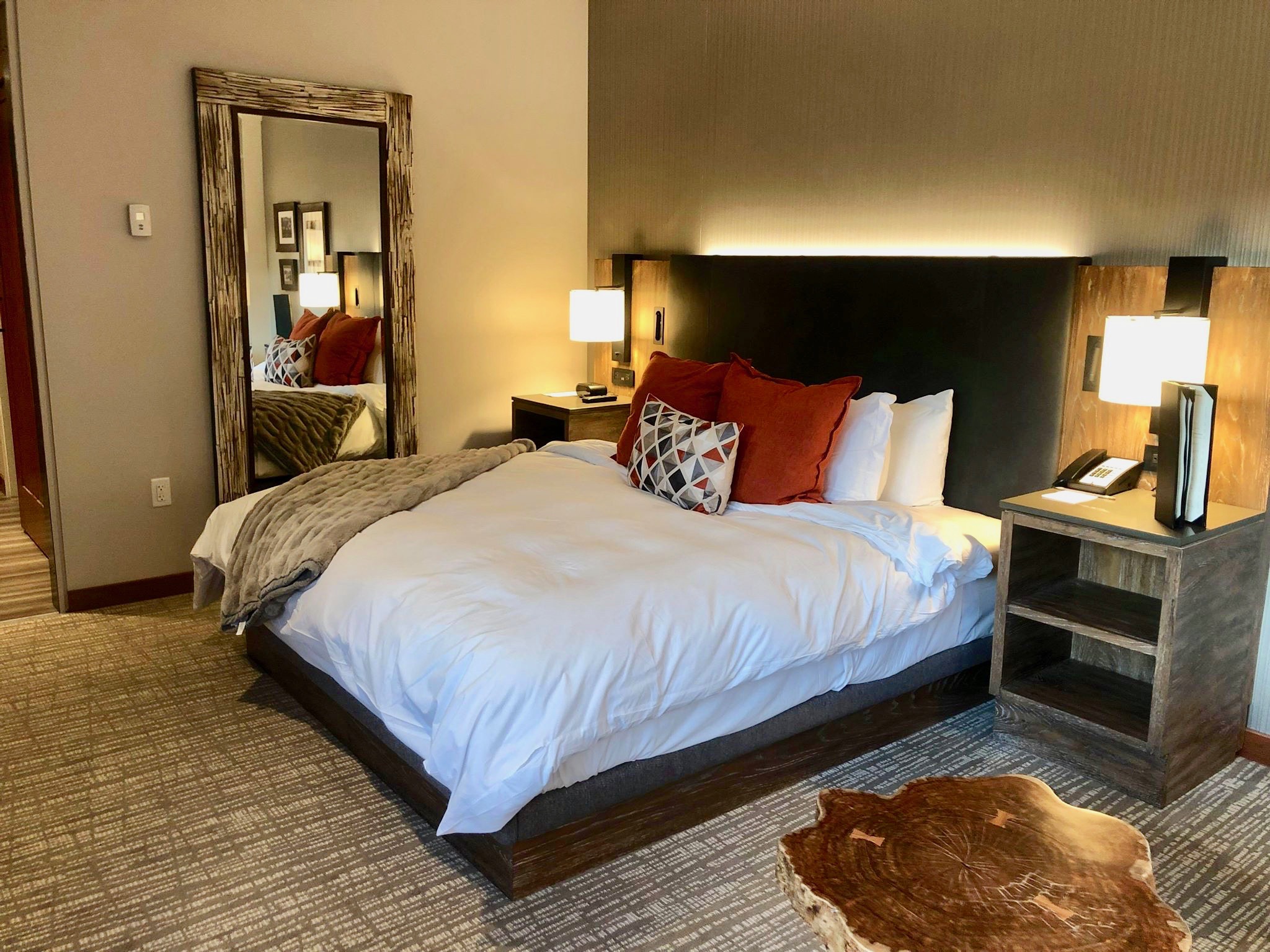 The only time I’d stepped into a Salish room was in 2011 when a friend was in town – so I was curious how different the rooms would be after the remodel. I was pleasantly surprised that the lodge feel was still there, but in a more modern, light way. The remodel, Melissa and I both agreed, did away with the outdated somewhat heavy, dark feel the rooms had.