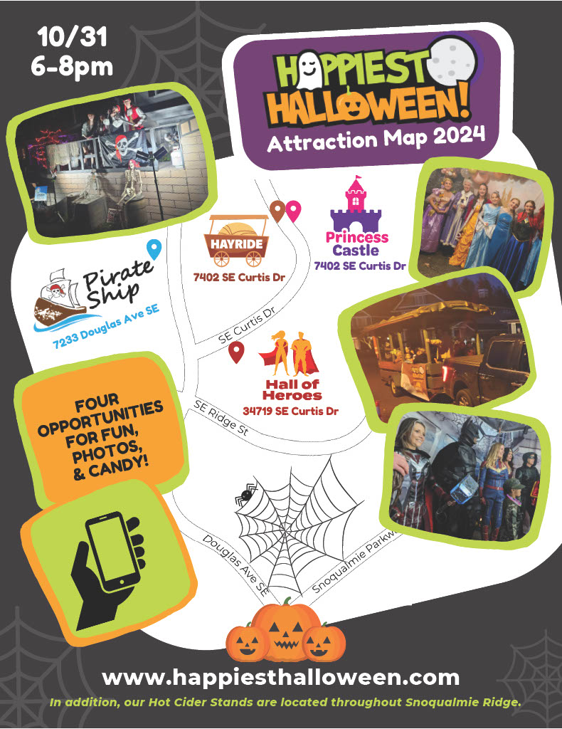 Get ready, Snoqualmie! On October 31st, from 6:00 to 8:00 p.m., the 21st annual Happiest Halloween event is back, offering fun and safe trick-or-treating experiences around the picturesque Douglas Street/Curtis Drive Loop in Snoqualmie Ridge.