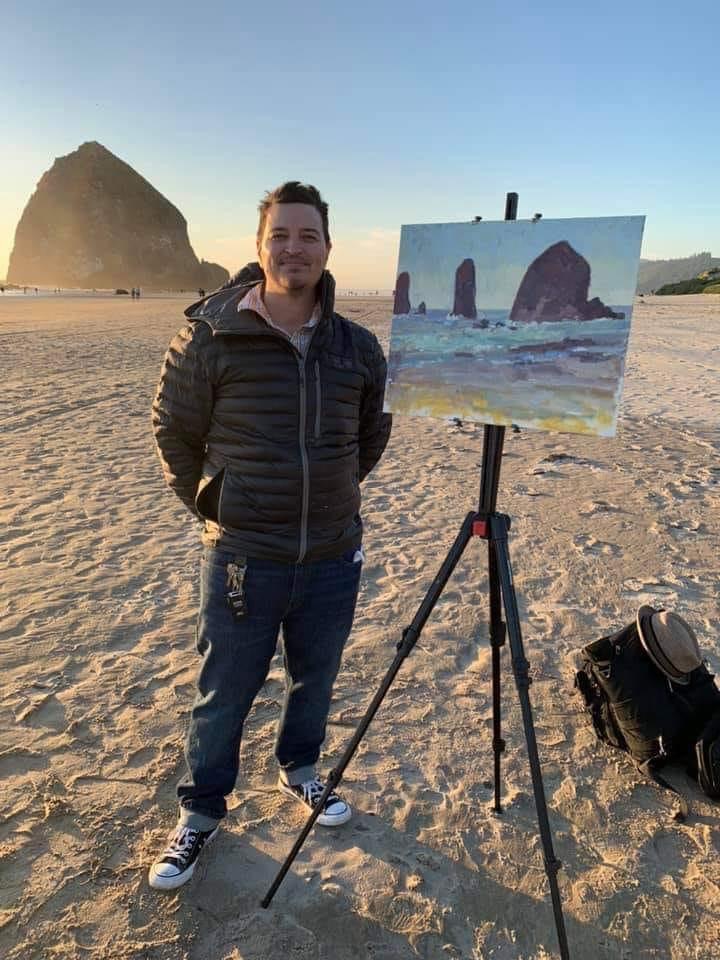 Alex’s art provides comfort and inspiration for those he left behind. His Mount Rainier and Cannon Beach paintings, in particular, hold special significance for Jen. “I love his Cannon Beach paintings. It was one of our favorite places to go. We went every year for our anniversary and Alex would always paint there. Those paintings always sold very fast.”