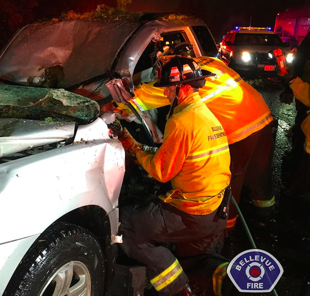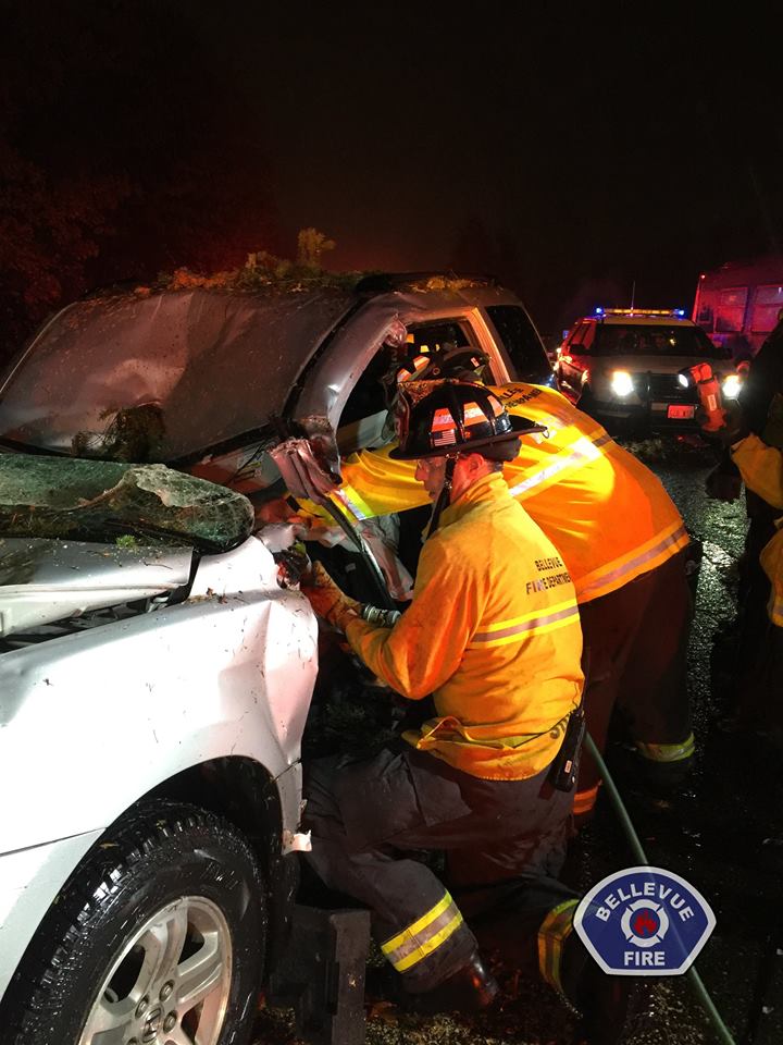Firefighters used the ‘jaws of life’ to get her out of the car. The EMT’s started treatment on her leg that had been crushed under the steering wheel. They got her into an ambulance and transported quickly to Overlake Medical Center, even staying with her until the emergency room CT scan was complete.