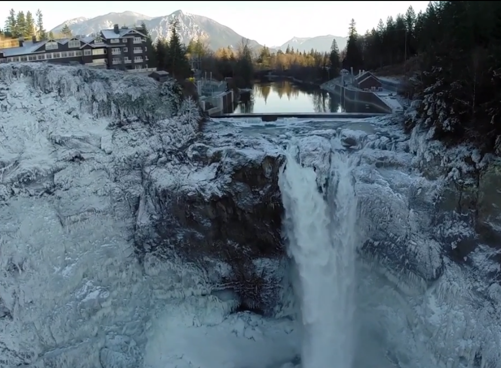 What Raul filmed with that “toy” is pretty amazing; capturing angles of Snoqualmie Falls many (including longtime locals) may not have seen before, as well as some great video of the iconic Salish Lodge.