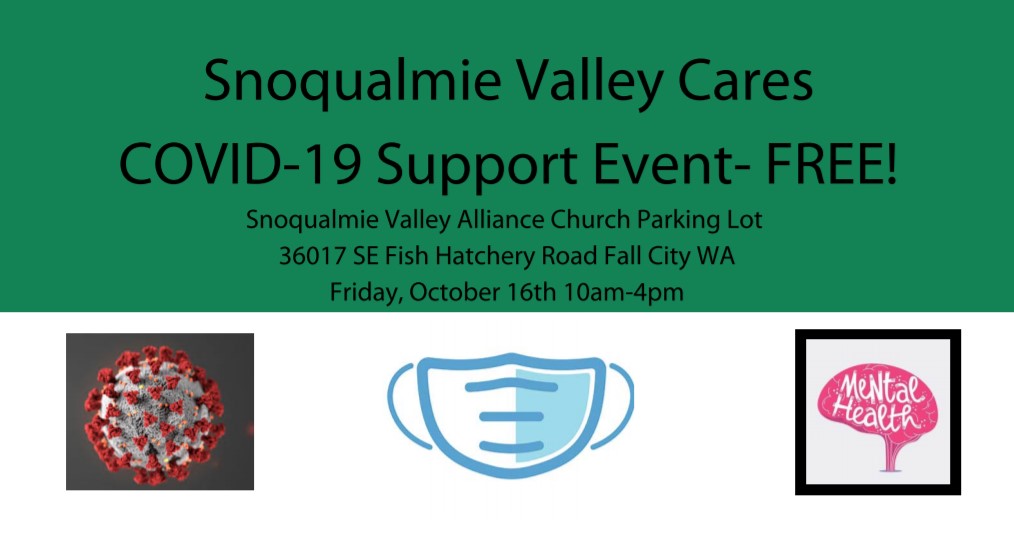 Snoqualmie Valley community organizations come together to present a Free COVID-19 community support event, happening on Friday, October 16th.