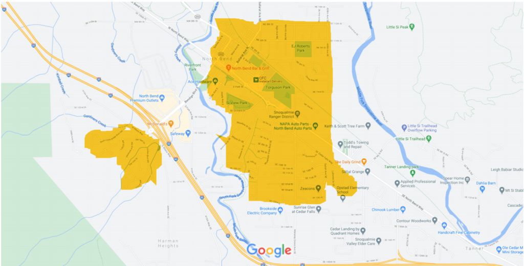 - Their pickup service is being limited to specific neighborhoods in North Bend, Snoqualmie, and Fall City. Please look at the maps (in the slideshow below) to make sure your house is within our pickup zone.
