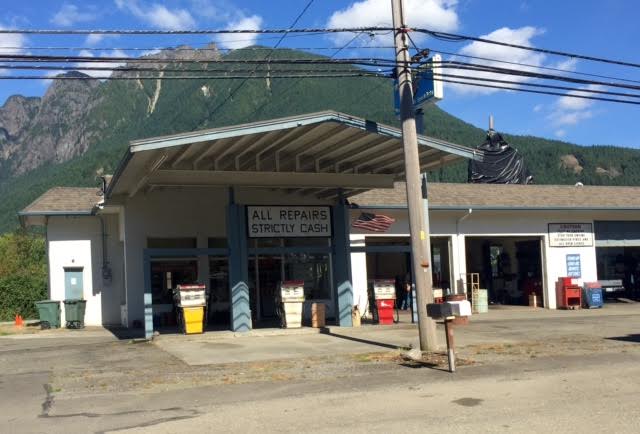 Meanwhile up the road at Transmissions Plus, housed inside an old gas station, vintage gas pumps and new signage were installed on September 9th  – and electronic reader boards were placed warning drivers of intermittent North Bend Way road closures during the upcoming week.  Detours will be clearly marked when the roadway is closed.