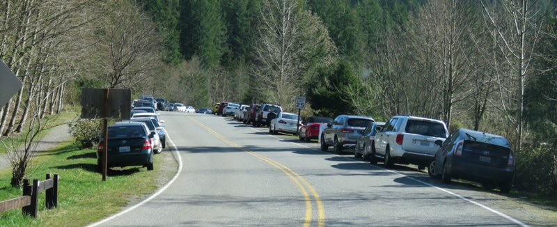 North Bend residents living along Cedar Falls Road near Rattlesnake Lake have again taken to social media to express frustration as they witnessed many people ignoring the statewide Stay Home order and park/trail closures in place to slow the spread of the novel coronavirus.