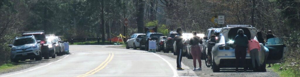Driving up to see for myself, I witnessed at least 40-50 cars parked along the road at 3:30PM on April 8th – and then more cars on April 9th.
