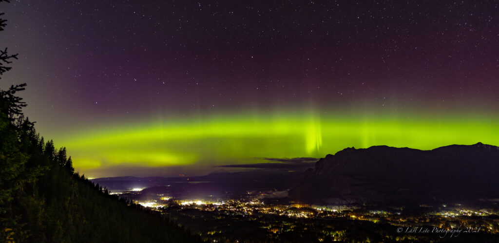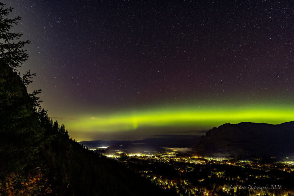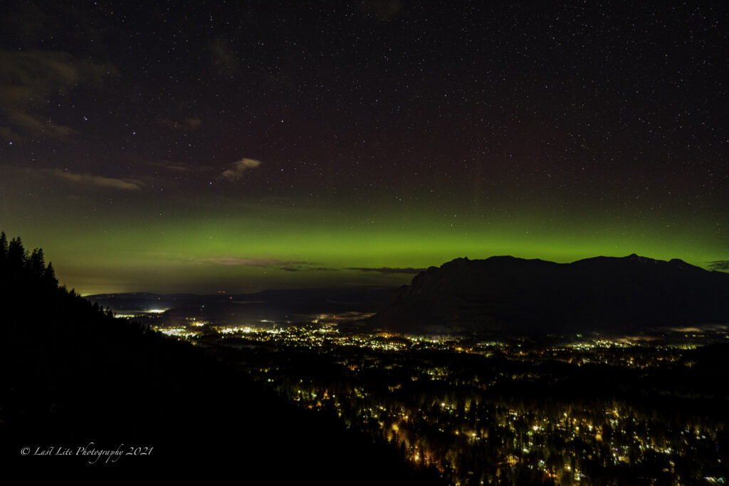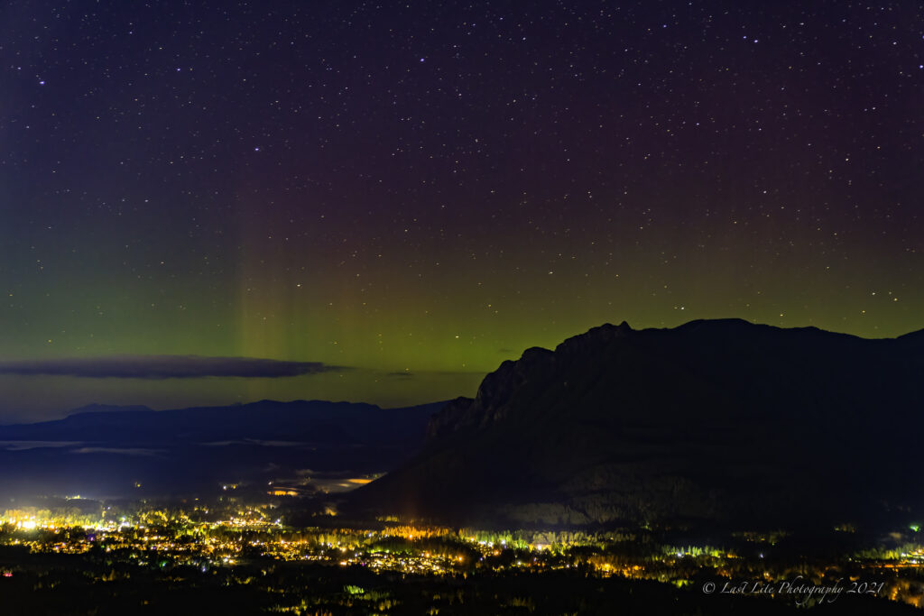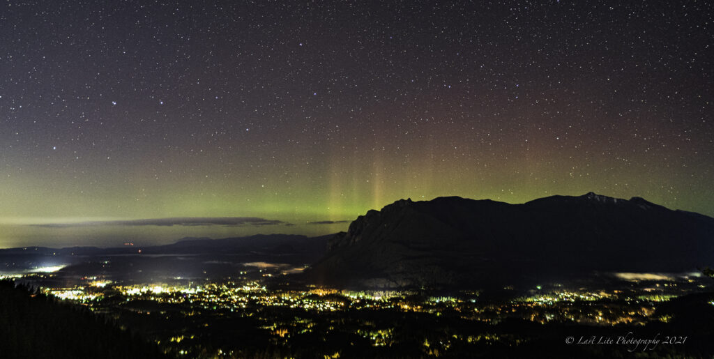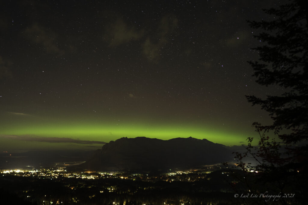 Wow … we were among the dozen or so people along the lake looking for a dark spot to see the lights. I saw a headlamp on the trail going up the mountain, and thought, Sheesh, we really should have thought about that. Amazing story and amazing photos.
