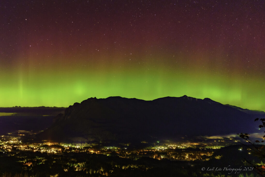When we last left Travis in part one, he had successfully climbed to a high vantage point on Rattlesnake Ridge to photograph the Aurora Borealis. Now he had to navigate his way down the trail while being followed by forest resident who may have been curious or may have had nefarious intentions. Read on to find out how he escaped the woods alive…