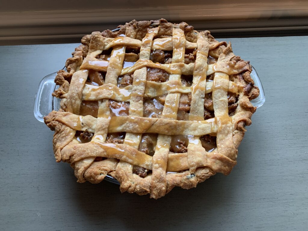 Taking the pie out of the oven, I knew it looked good. However, the adage that looks aren’t everything rings true in the pie world; in the end, it comes down to taste. Unfortunately, my guess was as good as anyone’s as to how it tasted – it could look great but taste horrible. Hence, the best I could do is pray and hope that it tasted out as delicious as it looked. From appearances, the strudel crumble topping looked perfectly caramel-soaked, and the lattice looked remarkably straight and even. It hands-down looked like the best-looking pie I had ever made – maybe keeping my fingers and toes crossed for the last week had worked.