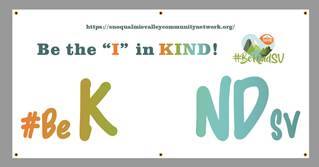 Look for their community kindness banners in Duvall, Carnation, Fall City, Snoqualmie and North Bend. Be the “I” in kind by standing where the “I” should be, taking a photo and tagging #BeKindSV.