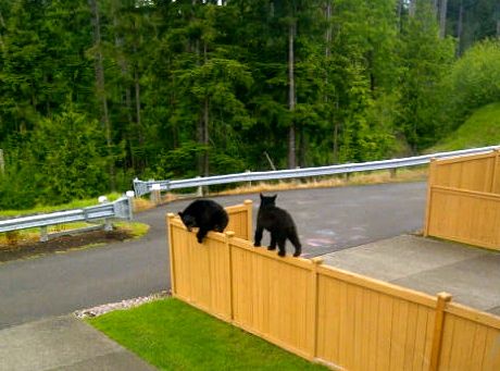 Around 7:35AM today, neighbors spotted what they believed to be the cubs’ mother and scared her away by setting off a car alarm. Then 10 minutes later they heard a loud noise and looked out to see the cubs balancing on the fence. The bears walked across of the top of the fence Davis shares with a neighbor on SE Carmichael Street, jumped down and then entered the woods behind the stretch of homes.
