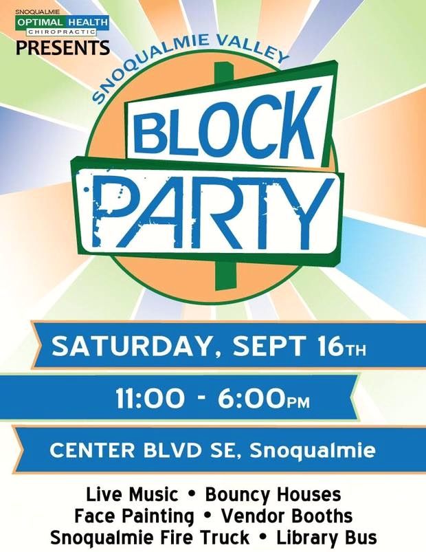 Snoqualmie Valley Block Party happens on Saturday, September 16th from 11AM to 6PM.