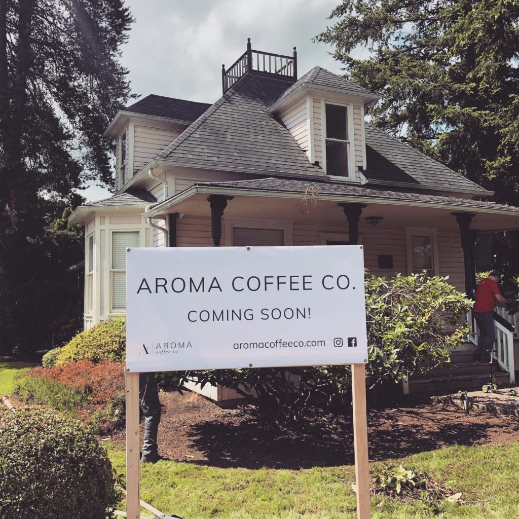 Aroma Coffee is scheduled to open the first week of September – but with build-out happening right as COVID hit, that almost didn’t happen.