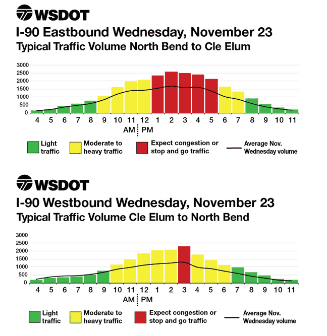 Below are some anticipated travel congestion between North Bend and Cle Elum for the Thanksgiving weekend.