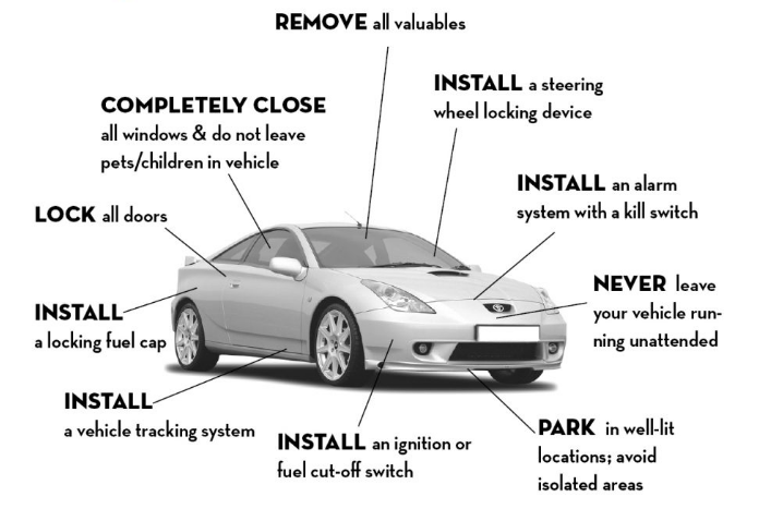 - Secure all doors and windows whether parked in the driveway or on the street.