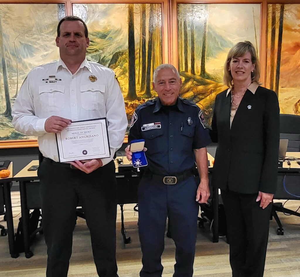 The King County Fire Chiefs’ Association has bestowed a Medal of Merit upon Snoqualmie Volunteer Firefighter Robert Angrisano in acknowledgment of his exceptional leadership and skills that have made a positive impact on both the fire agency and the local community.