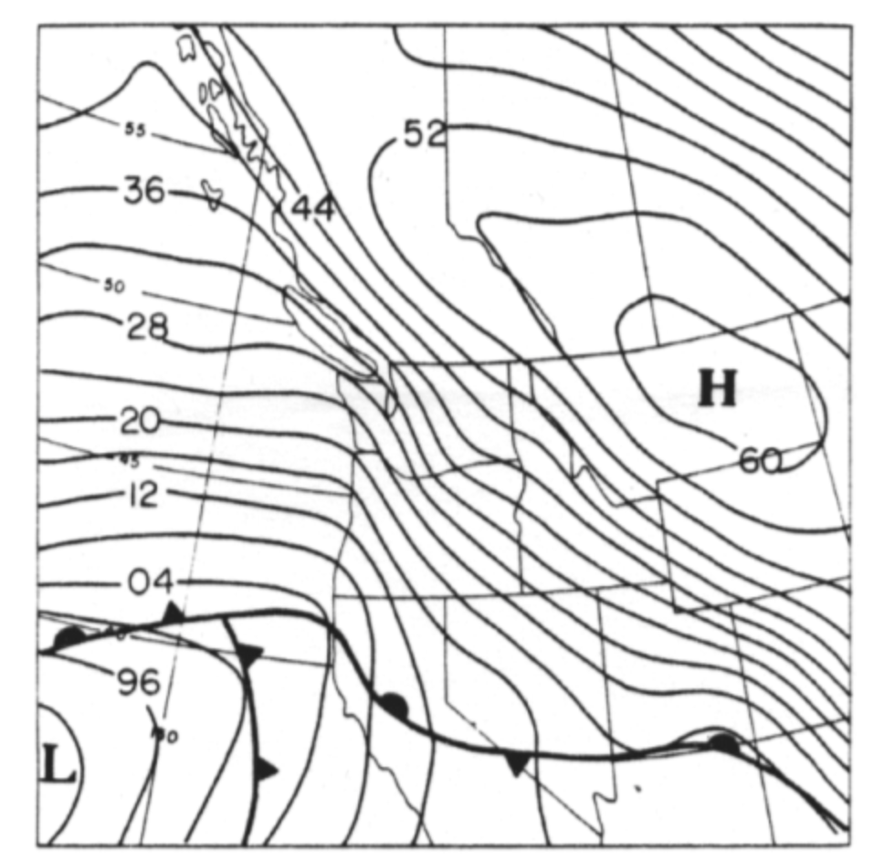 NWS sea-level pressure analysis for 4:00 AM on December 24, 1983. Graphic from The Weather of the Pacific Northwest, Cliff Mass (2008)