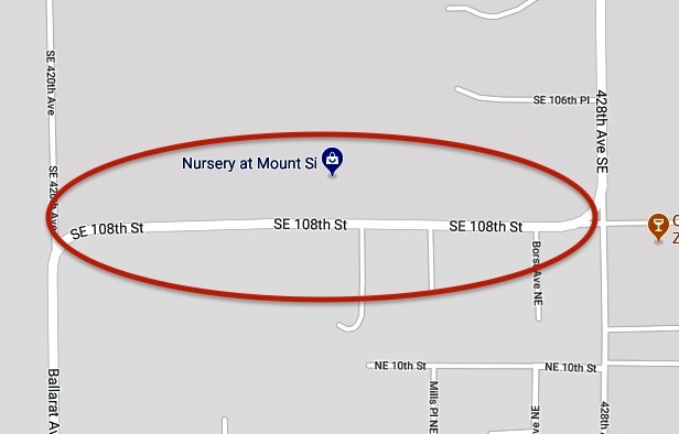 Section of NE 12 Street (also called SE 108th Street by King County) that will be reconstructed summer 2018
