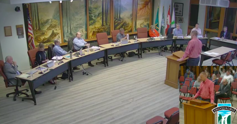 Marcinko addressing Snoqualmie City Council on the city’s Facebook Live stream of the Oct. 23rd meeting.
