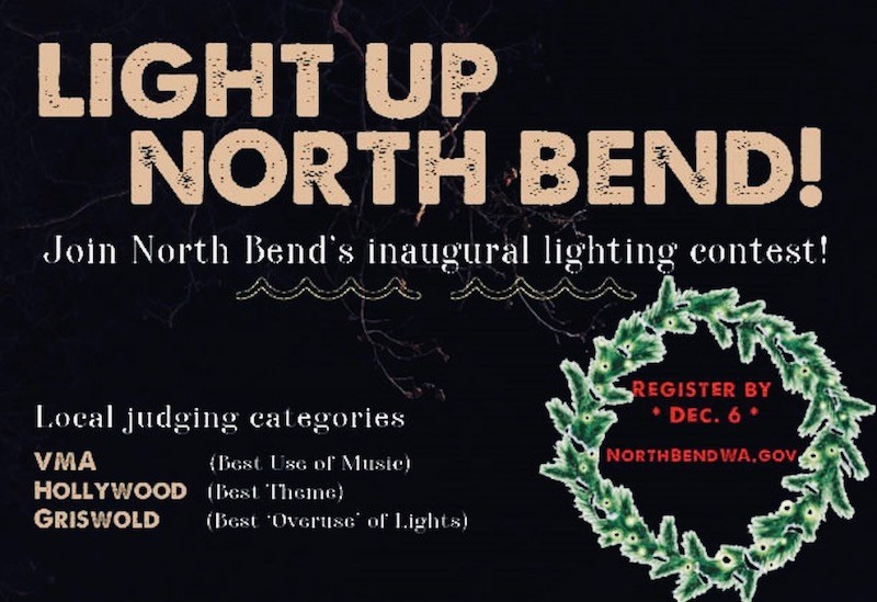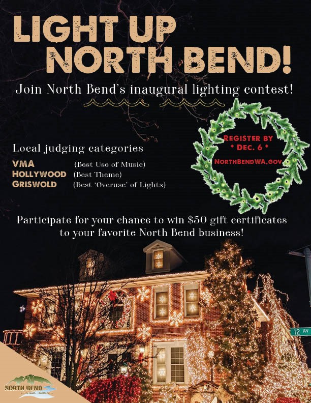 Enter North Bend’s inaugural lighting contest: LIGHT UP NORTH BEND – A HOLIDAY SPIRIT CONTEST.