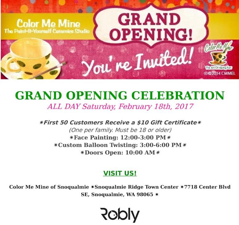 For more information, including business hours, visit www.snoqualmie.colormemine.com or the Color me Mine Snoqualmie Facebook page.