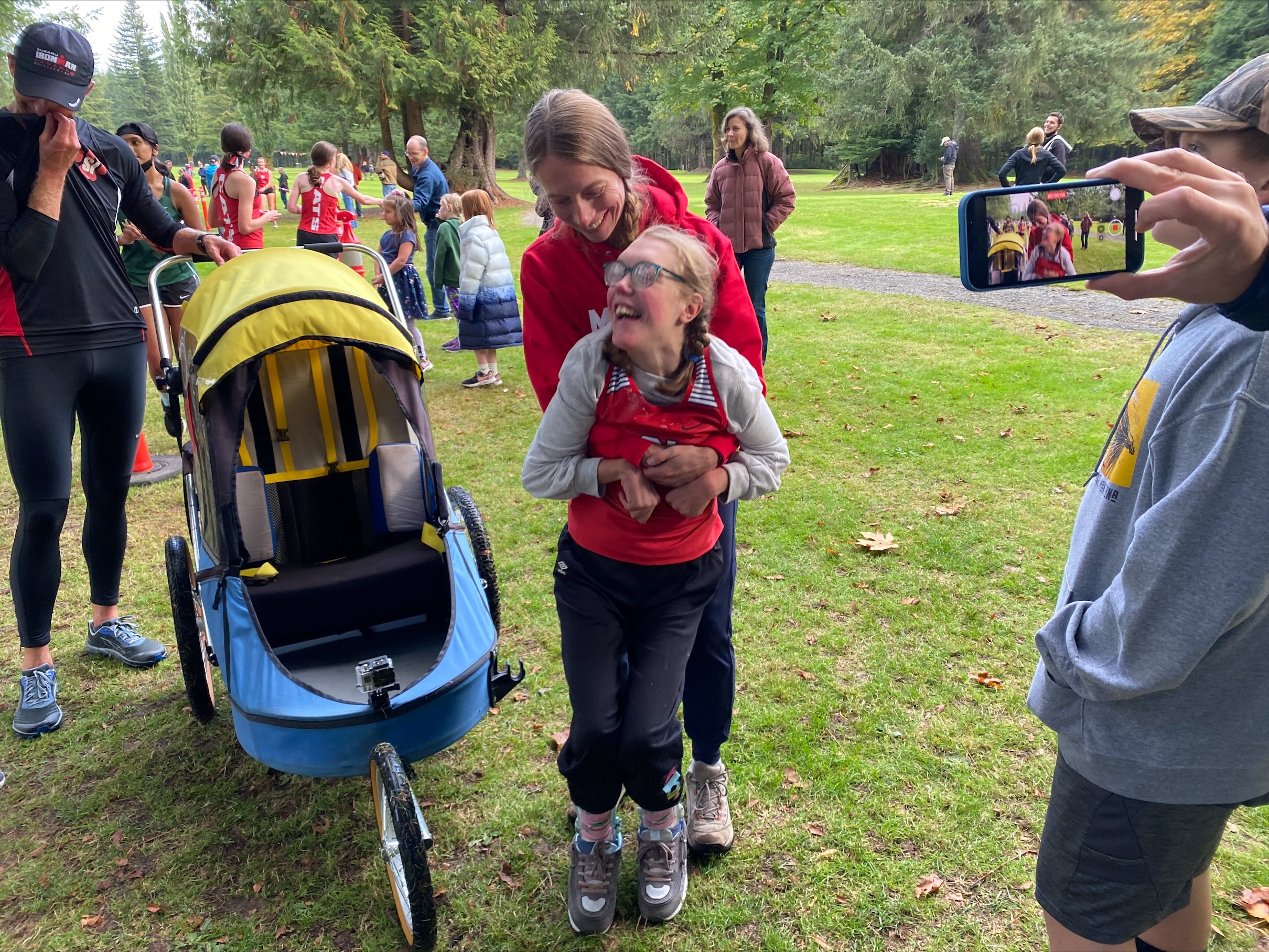 One day Ellie’s classroom teacher, Erik Tierney, reached out to Summer after hearing from the cross-country coach that all students were welcome to participate in the sport at school. Tierney knew Ellie loved to run, so he worked with Coach Steven Crane and Summer to get her all set to join by obtaining special permission from the other teams to participate in the meet.