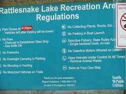 I sure was. To make matters worse, when concentrating on specific areas like Rattlesnake Lake, I realized there were two, sometimes three,leashenforcedsign government entities making the rules for that area.