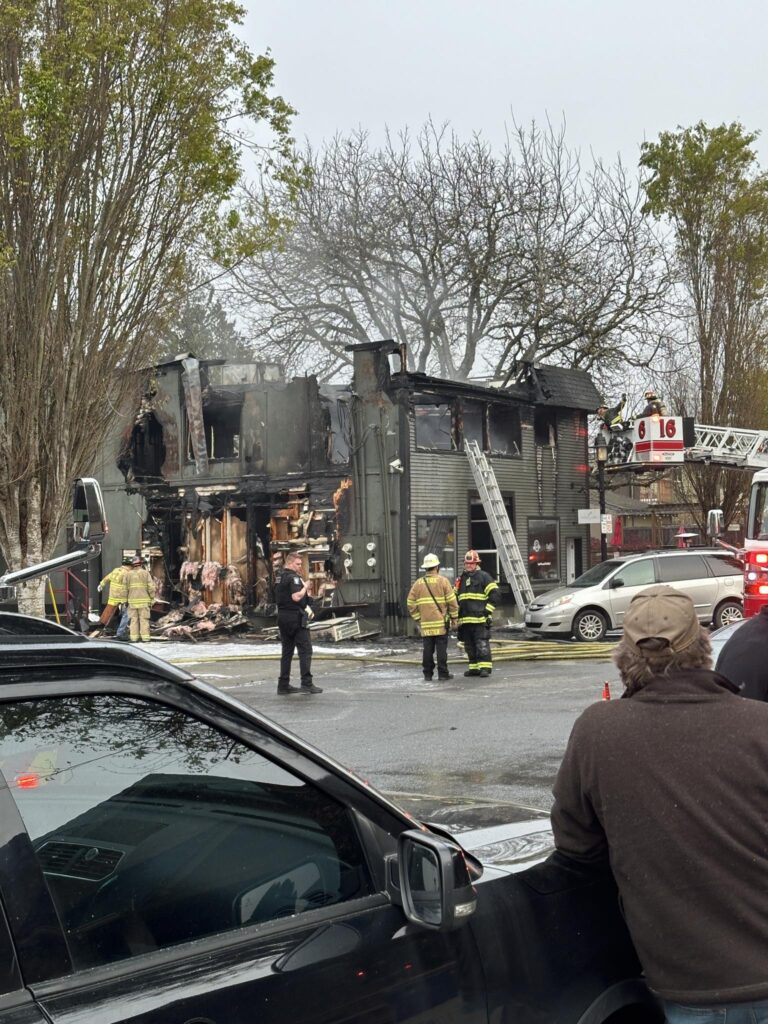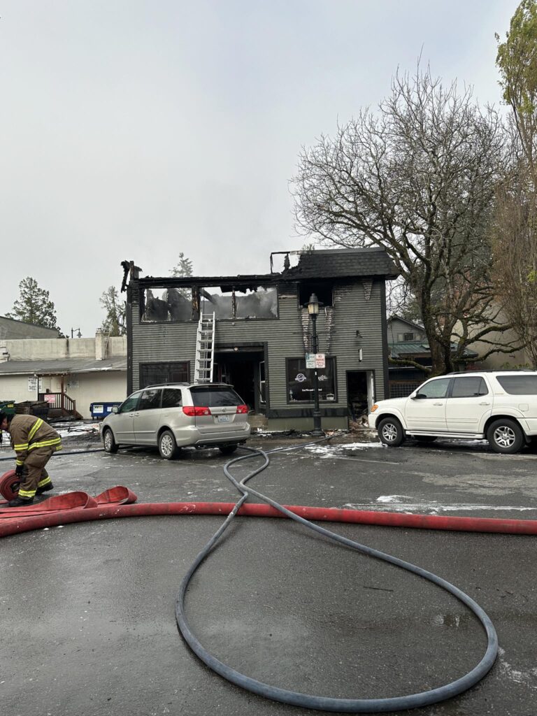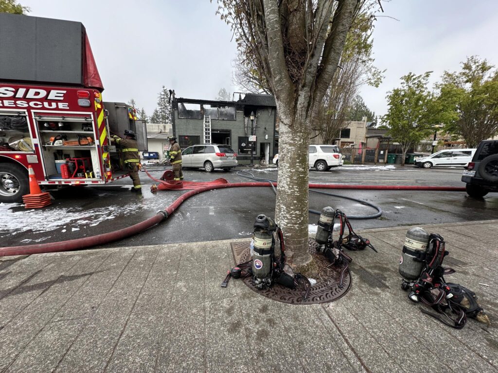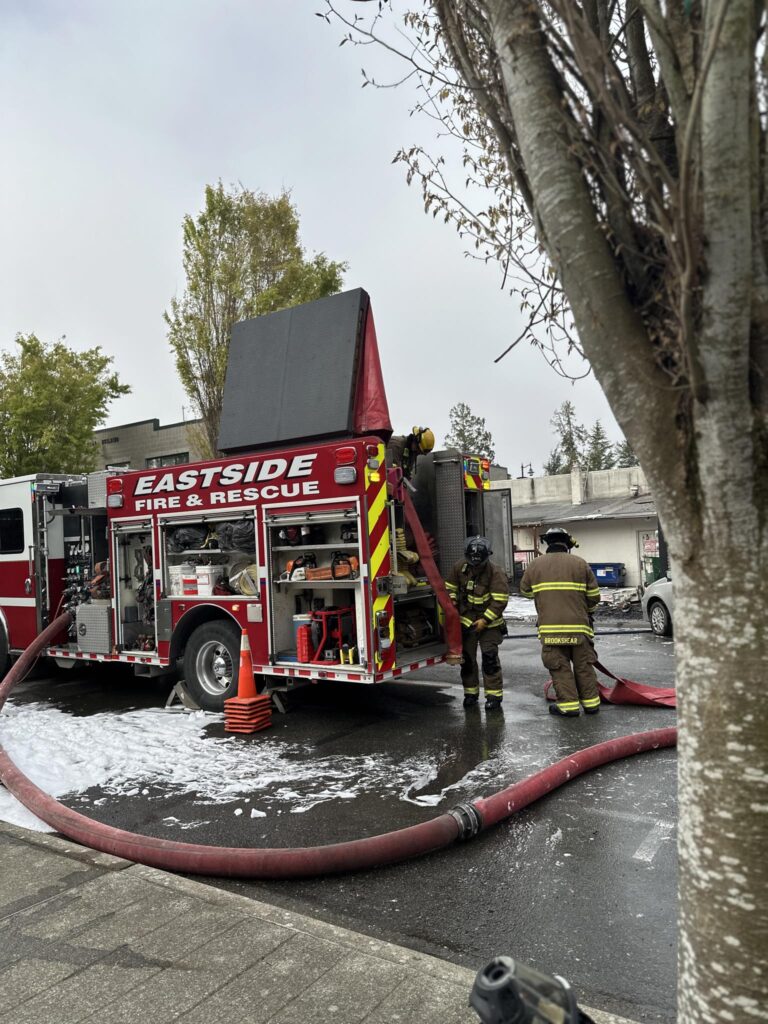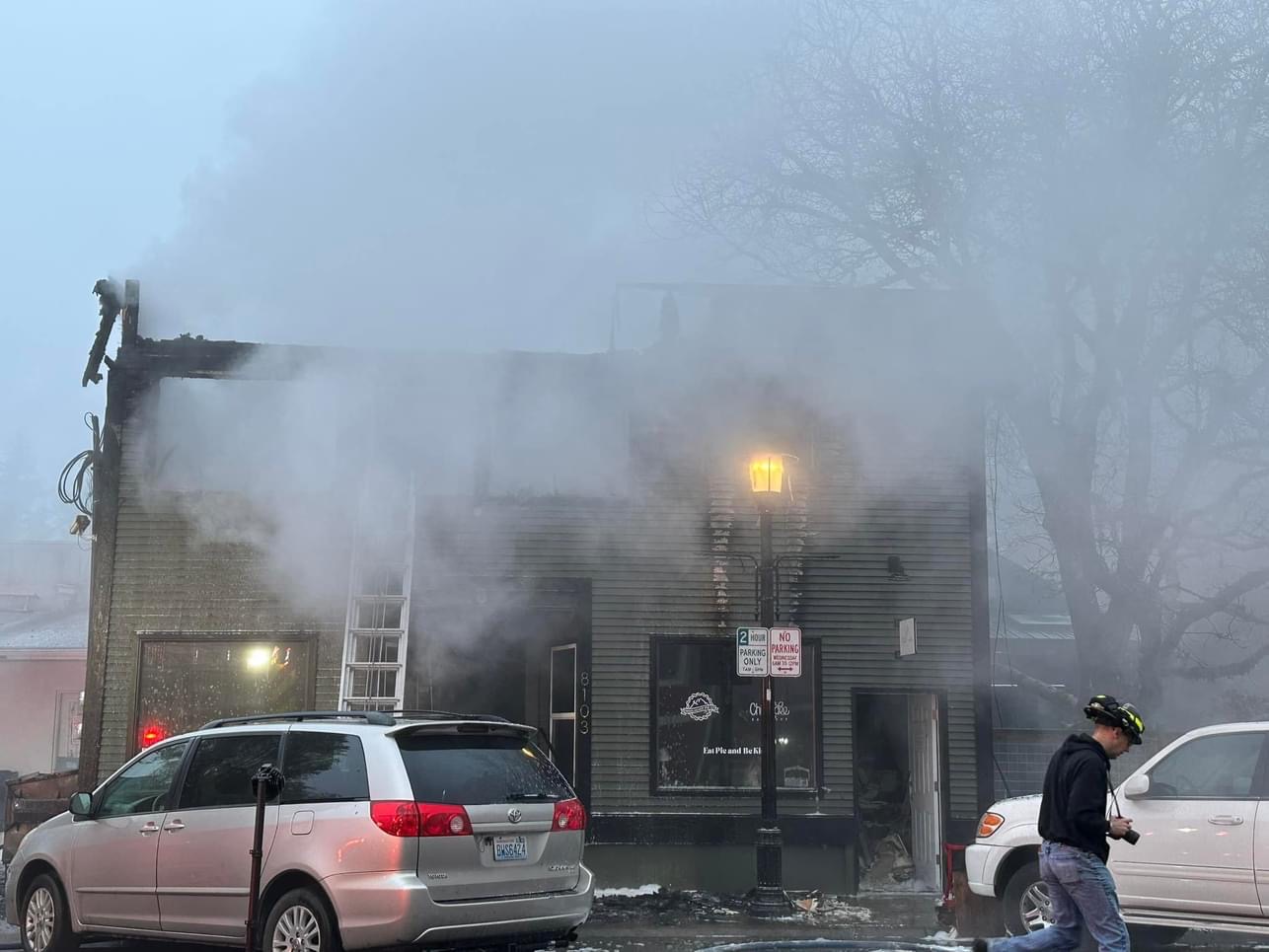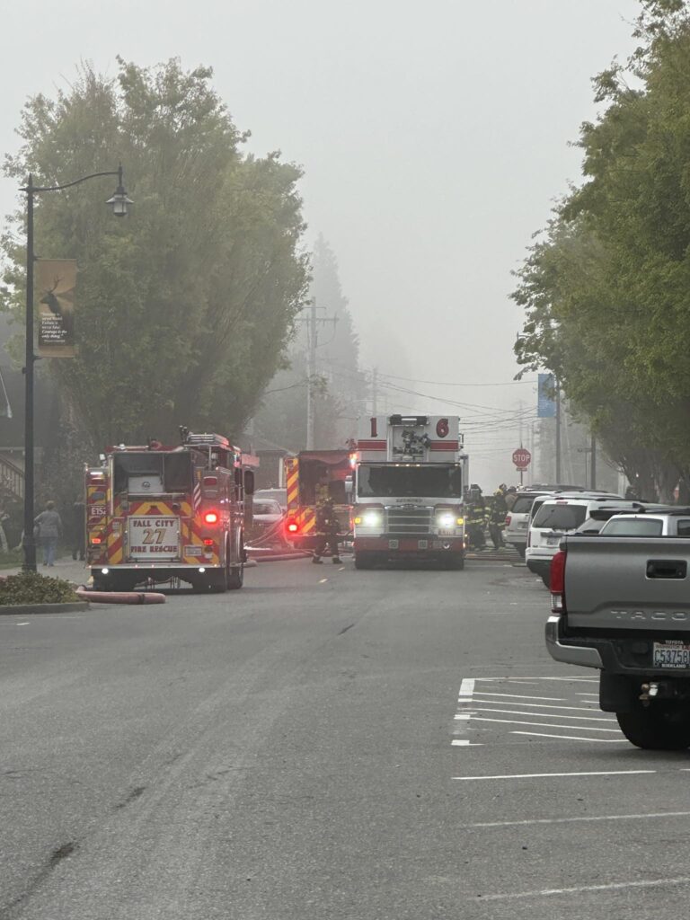 On Sunday, April 14th, 2024, at 5:07 am, crews from the Snoqualmie Fire Department and Emergency Management, Eastside Fire & Rescue, Redmond WA Fire, Bellevue (WA) Fire Department, and Fall City Fire Department responded to a fire in Downtown Snoqualmie reported by Snoqualmie Police Department Ofc. Corey Hendricks, who smelled smoke while on routine patrol in the downtown area and searched for the source.