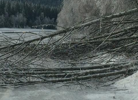 What was discovered, according to WSDOT, were a number of downed (and ice coated) trees between mileposts 40 and 50, along with snow slides near milepost 50. WSDOT stated the slides weren’t really avalanches, but described them as powdery slides across the roadway. Many ice coated trees lining the freeway were also reported to be close to falling, making it too dangerous for crews.