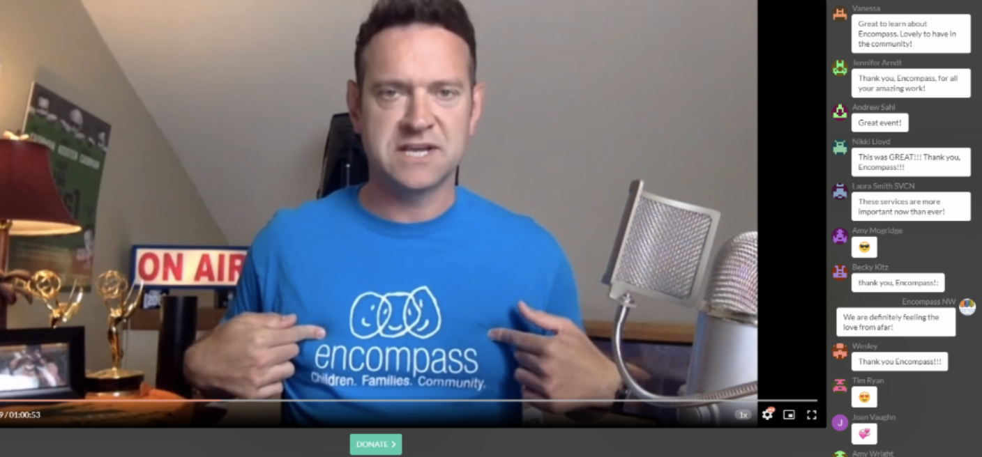 KING 5’s Chris Cashman led the festivities for the fourth year in a row, taking his hosting duties virtual this year. Encompass Executive Director Nela Cumming shared how Encompass has been supporting families during COVID-19 and to present this year’s Encompass partner awards.