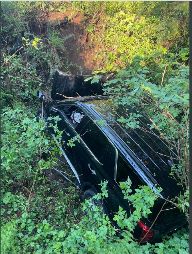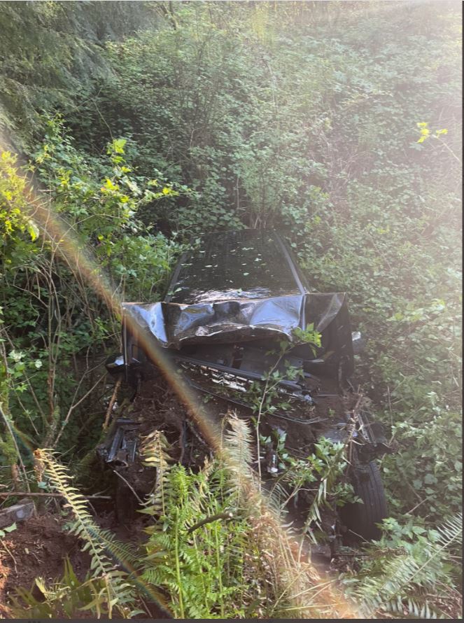 Then later, around 8 pm on Eastbound SR 18 near Tiger Mountain summit, a vehicle left the roadway, jumped a creek, hit a dirt wall and slid into the creek.