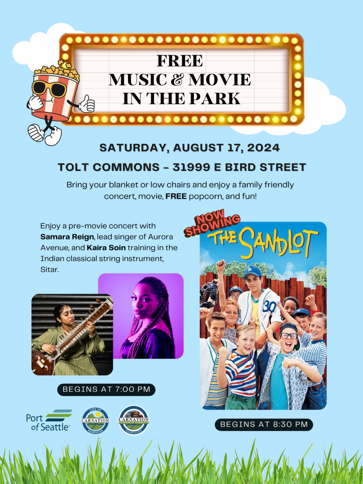 Bring your blanket or low chairs and enjoy a family-friendly concert, movie, FREE popcorn, and fun!