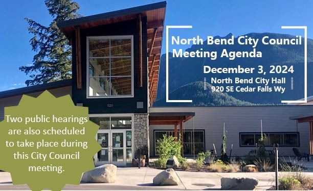 The community is invited to join City staff and elected officials for the December 3 City Council meeting and two public hearings at 7 p.m.