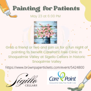 Mother’s Day is approaching and what better way to celebrate mom than to give the gift of time together! Join us at Sigillo Cellars in historic Snoqualmie for a fun evening that benefits the work of CarePoint Clinic, our community free clinic.