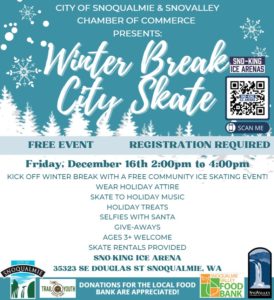 Please bring canned food donations to the Snoqualmie & Preston food banks.