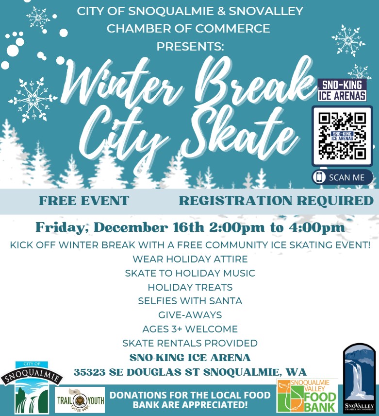 Holiday Skating Event for SnoValley community and families! Includes FREE registration and skate rentals, giveaways, an Ugly sweater contest, holiday music & games, a Santa appearance and a selfie station.