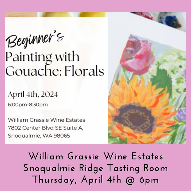 William Grassie Wine Estates Snoqualmie Ridge Tasting Room: Beginner’s Painting w/Gouache: Spring Florals