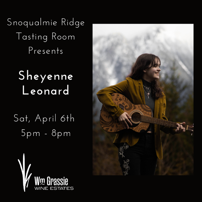 William Grassie Wine Estates Snoqualmie Ridge Tasting Room: Live Music with Sheyenne Leonard