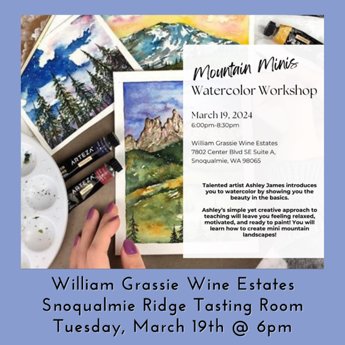 William Grassie Wine Estates-Snoqualmie Ridge Tasting Room Watercolor Workshop: Mountain & Landscape Miniatures