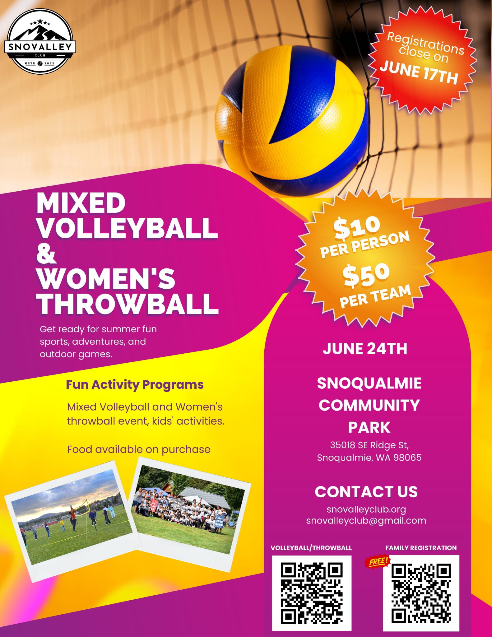 The volleyball and women’s throwball registration is open until June 19th. There will be food for purchase and kids’ activities. There’s something for everyone, so let the games begin!