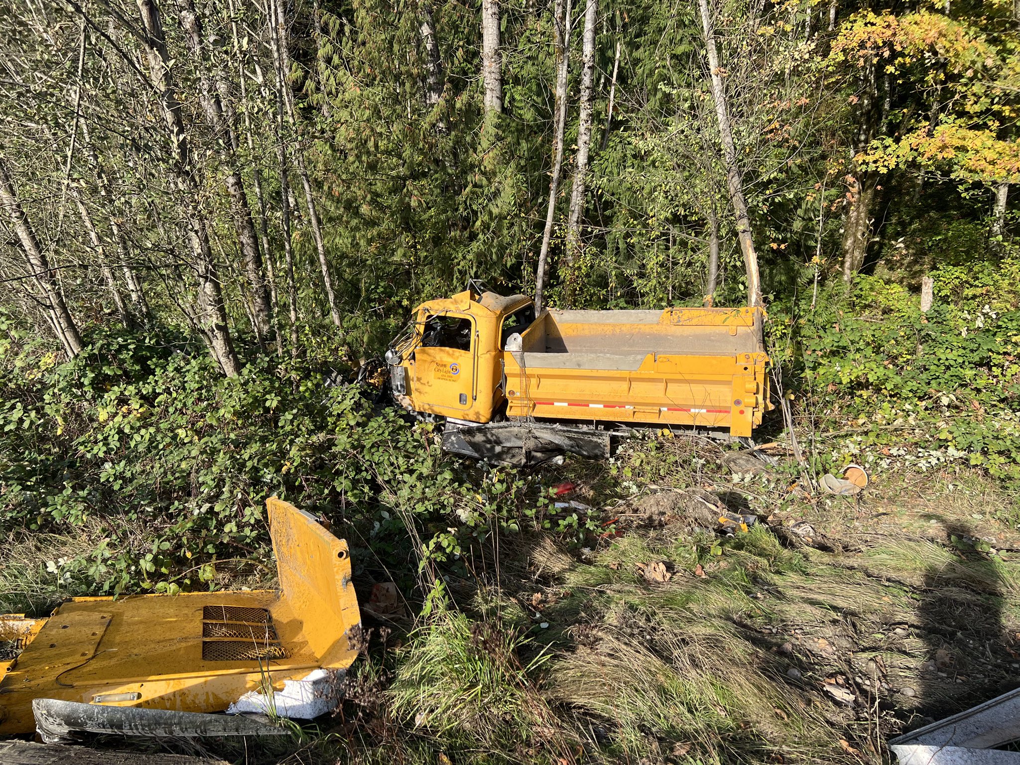 Crews responded to a one-vehicle accident on westbound I-90 west of milepost 25 involving a vehicle that went off the roadway, rolled, and ended up in the woods. The trailer it was towing ended up in the middle of the roadway. The driver was transported to the hospital with serious injuries.