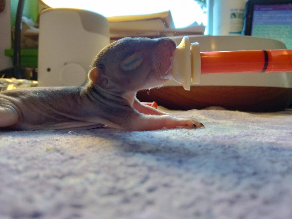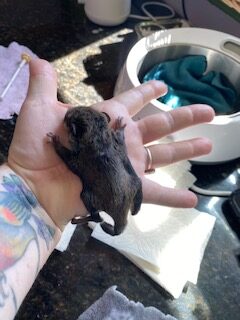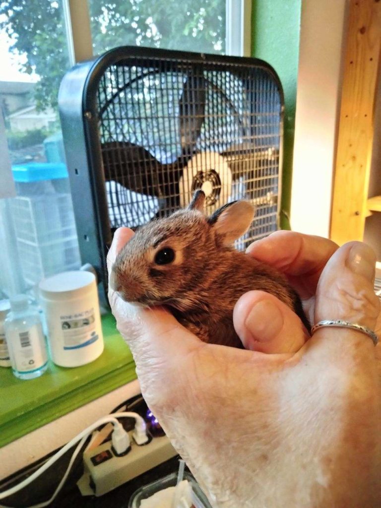 One Footprints volunteer, Dee, found her when she brought in some baby possums after the mother was killed. Paws couldn’t help but gave her the center’s number, and Kathi got her in within a couple of hours. She says it impresses her how much Kathi knows and doesn’t turn people away when she can help. She also noted, “she has a crazy amount of patience for not only animals but our crazy bunch of volunteers.”