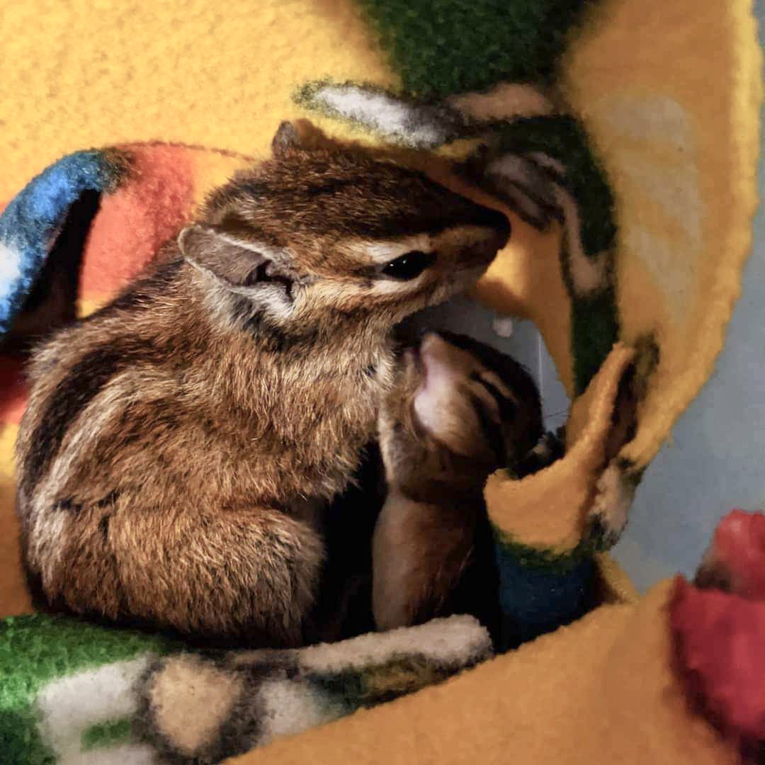 One thousand training hours later, under a licensed rehab center, Footprints, named for her mother’s favorite poem, was opened. The facility takes in Eastern Gray squirrels, Douglas squirrels, Flying squirrels, Mountain beavers, chipmunks, ground squirrels, skunks, porcupines, Cottontails and marmots, as well as Deer mice and rats when she has the time.