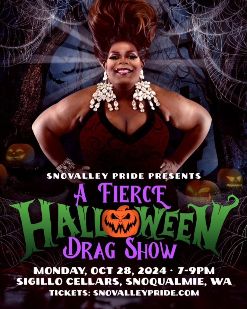 Join Sno Valley Pride for their Fierce Halloween Drag Show! With stunning performances by Celys S. Black, Macy Marcs, Holli B. Sinclair, and Melody Lush Paradisco, this all-ages show also includes audience participation, fun haunted games, and a costume contest with a grand prize for the best costume.