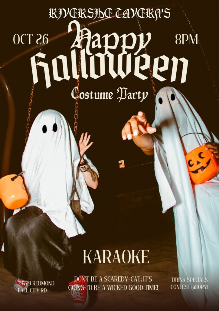 Riverside Tavern will host its annual Halloween Party featuring drink specials, a costume contest, karaoke, and prizes. Celebrate Halloween in style with friends and family!