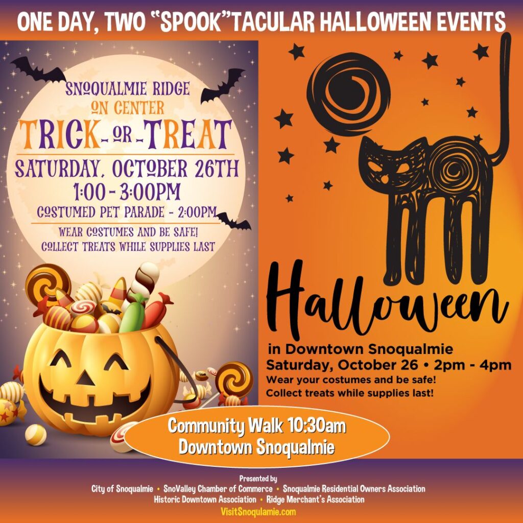 With so many fantastic events happening this Halloween, there’s no shortage of frightful fun in the Snoqualmie Valley. Be sure to mark your calendars and prepare your costumes for a spooky season to remember!
