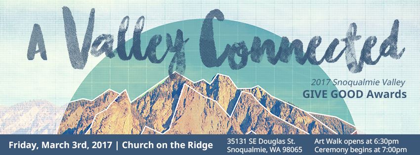 The red carpet event will be held on March 3rd, 2017 at 7PM, along with a 6:30 PM pre-ceremony Art Walk & Music, at Church on the Ridge, 35131 SE Douglas Street in Snoqualmie. There will be local entertainment and an inspirational key-note speaker.