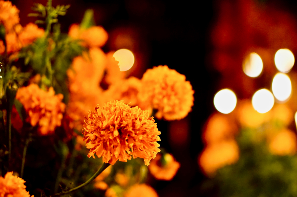The Day of the Dead is also the fusion of two cultures. In August, the Aztecs in pre-Colombian Mexico honored their dead ancestors and the god and goddess of the underworld. They burned copal incense and spread marigolds or cempasuchitl flowers to guide the dead back to the world for a visit. They believed that marigold petals held the sun’s rays, guiding the dead like a beacon.