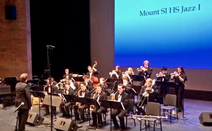 Mount Si Jazz Band is Directed Bill Leather. In a district announcement he commented, “We are extremely proud of the hard work and dedication our jazz students bring to the music every day. Their passion and commitment to excellence is inspiring!We are looking forward to representing Mount Si High School at the prestigious Essentially Ellington Festival in May alongside some of the best high school jazz programs in the country.”